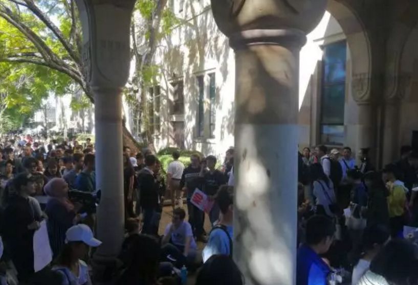 7月24,昆士兰大学开学日,一帮别有用心的反华分子,在校园内集结了起来。