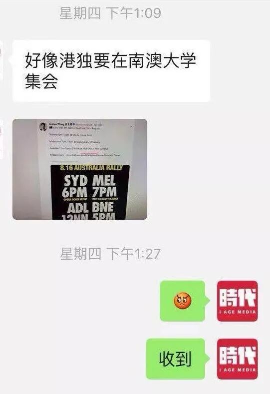 周四下午,时代君收到粉丝发来的消息,香港“学生领袖”黄之锋在脸书上号召澳洲四地的香港学生进行示威活动。