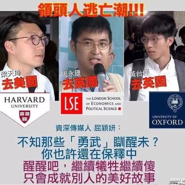 一边号召学生罢课,一边把自己安排进名校,这套操作已是香港“学生领袖”标配。他们已如愿去了哈佛、牛津、伦敦政经,现在是耶鲁。