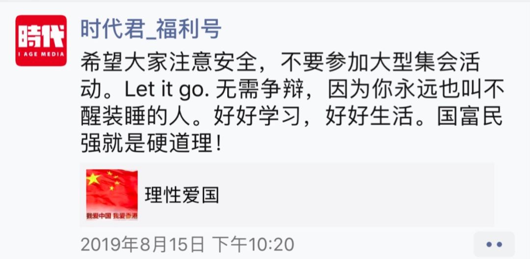最后时代君和所有同胞一样,希望香港早日恢复秩序,和祖国爸爸一起蓬勃发展!