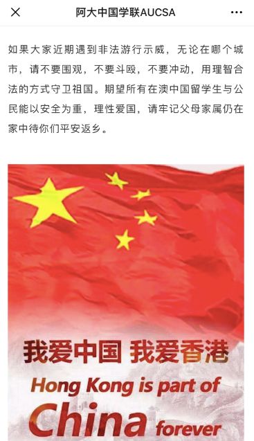本周四晚上,一份阿大、南澳大学、弗林德斯三校学联的联合声明《理性爱国》在朋友圈刷屏转发。