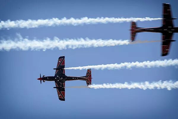 澳大利亚皇家空军“轮盘”飞行表演队在爱丁堡航空展期间进行特技表演