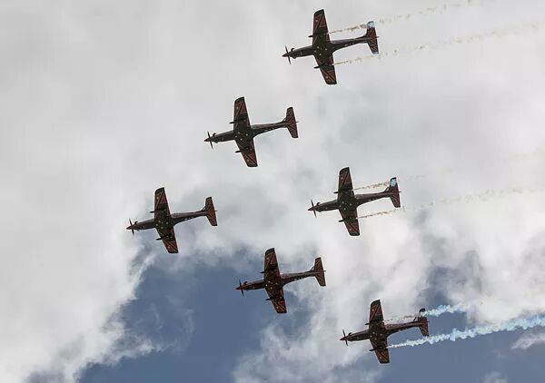 澳大利亚皇家空军的“轮盘”飞行表演队在他们的新型Pilatus PC-21飞机的航展上首次亮相。该飞机于今年初取代了PC-9A。