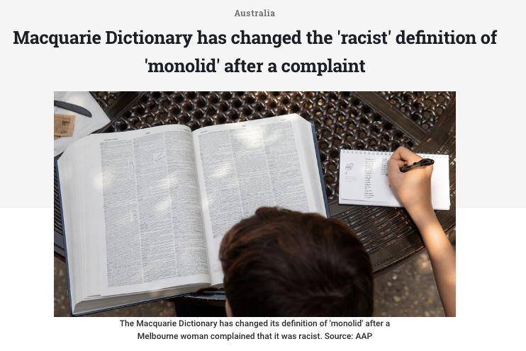目前,《麦考瑞词典》电子版已经修改了对单眼皮的词条定义。