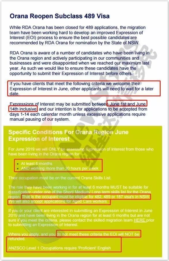 还有新州的Dubbo地区也非常需要人才(an area that was "crying out forworkers")。Dubbo属于Orana的中心地区,Orana几天前宣布6月1号-14号有条件地重新开放EOI递交申请,但是申请者要满足正在该地居住至少6个月,每周工作时长超过30小时等多个门槛,才会被视为有效申请。新财年的职业列表和额外的工作/居住要求,他们会在6月中旬公布,说是将会影响教育、工程、会计和护理专业。