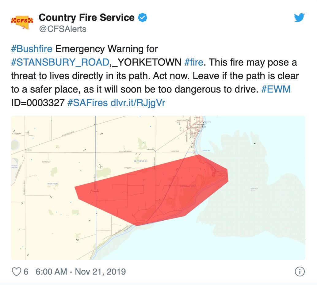 尽管今天的降温为消防工作创造了利好的环境,但南澳消防中心称这场大火可能对Yorke半岛的城镇构成威胁,严重火灾威胁仍然存在!