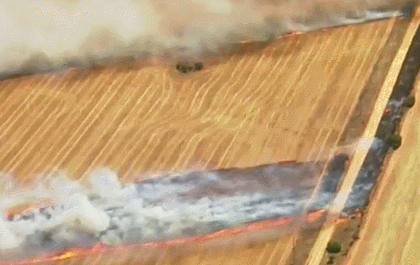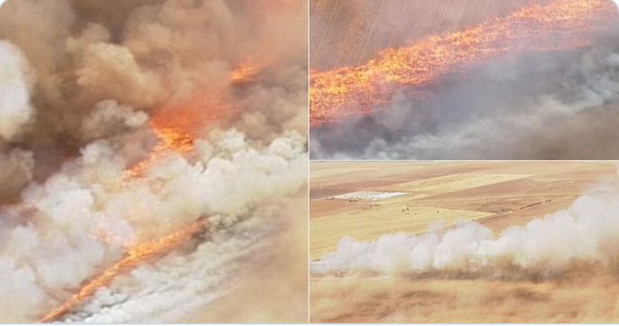 熊熊大火随着风势,将干旱的草场大面积点燃!