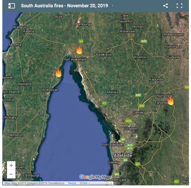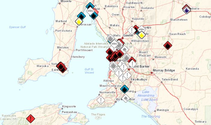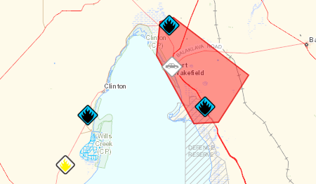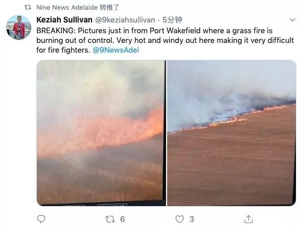 阿德莱德以北的Port Wakefield和Price的Yorke Highway已燃起大火!