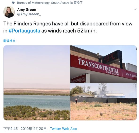 据目击者描述,Flinders Ranges被淹没在沙尘中,仿佛消失了。