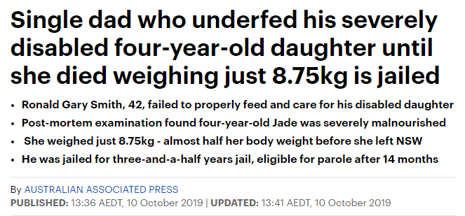 心痛!澳洲一4岁女童被父亲活活饿死!法官:被告无需承担刑事责任……