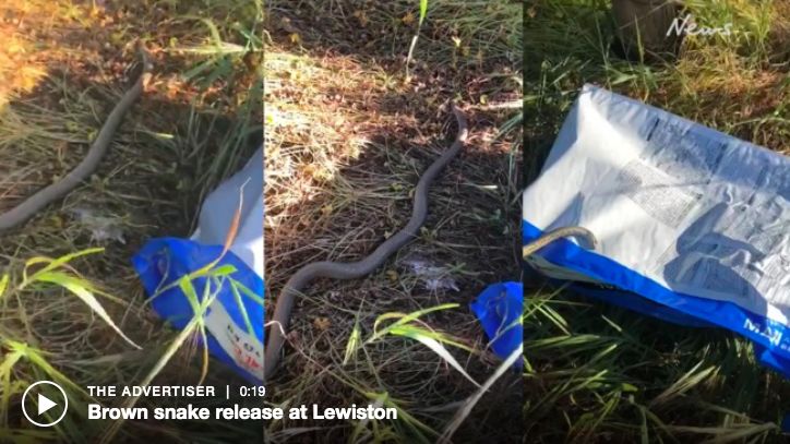 一段最近拍摄的视频显示,一条棕色的小蛇悬挂在阿德莱德北部的一条排水沟里。