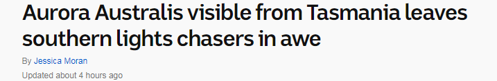 近日,澳洲南部上空出现罕见极光。