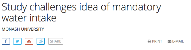 Monash大学的Farrell教授带领团队研究表明,每天要喝八杯水的说法是不科学的,因为我们一旦过量饮水后,大脑就会发出“禁止摄水”的信号!也就是说,无论你喝多少水,你的身体都会严格控制体内水量,喝多了也不吸收啊!