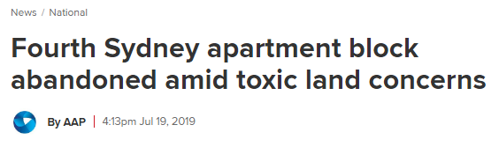 悉尼市政府表示,公寓楼建在昔日的制造工业用地上,这块土地上的有毒污染物质包括重金属、碳氢化合物、石棉和受污染的地下水。