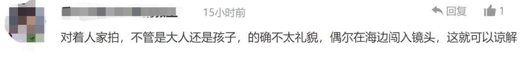 “对着人家拍,不管是大人还是孩子,的确不太礼貌,偶尔在海边闯入镜头,这就可以谅解。”