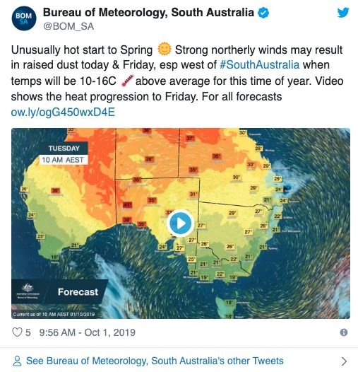 气象局还说,如果周五的预测不变的话,这个气温就是自四月以来阿德West Tce测量记录到的最高温度!