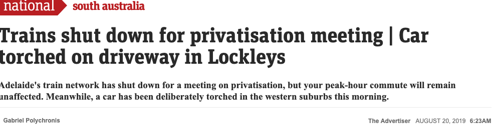 而这次停运的原因是,阿德莱德政府将召开会议,向员工们解释阿德铁路私有化的计划。