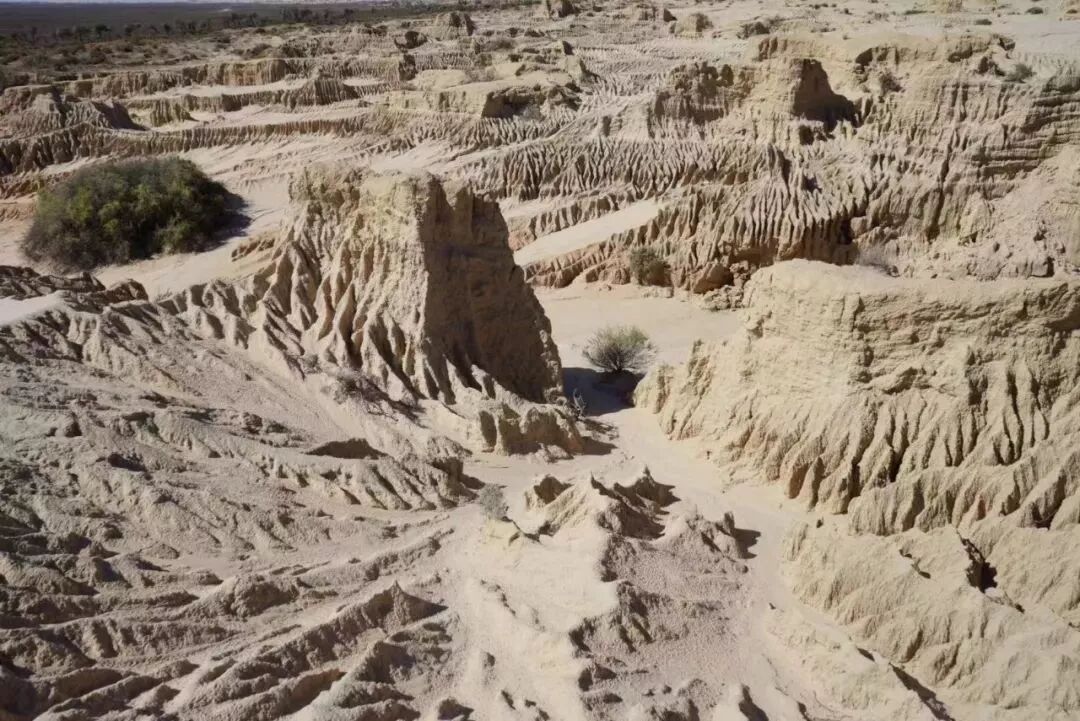 蒙哥国家公园(Mongo National Park):从维州我们一路北上,跨过边界到达新南威尔士,去看公园中的“wall of China”。行驶途中只见绿色逐渐褪去,取而代之的是大片大片的荒漠。蒙哥国家公园是澳洲第一个被列为世界遗产的国家公园,由于干旱和早年的过度放牧及滥砍滥伐,造就了沙丘现今的样子,放眼望去,空无一人,更能感受到它特有的诡异、灼热、荒凉的气氛。