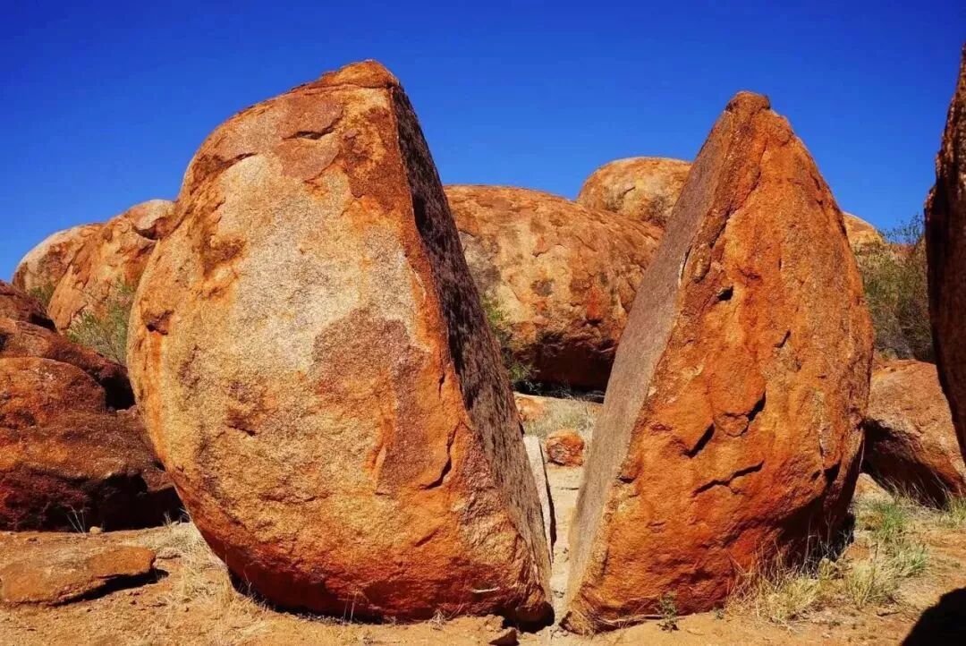 魔鬼大理石(Devils Marble) :顺着达尔文一路南下,在前往乌鲁鲁的路上会看到这些巨大的石头散落在路边。因为早年的地壳运动,巨石分崩离析,又经过雨水和风的冲刷,变成了如今的样子,而原住民则视这里为“圣地”,他们相信这些大石头是彩虹蛇下的蛋。而作为吃货的我,看着这些像极了土豆、白薯、猴脑和胡萝卜丸子的石头,不由自主的咽下了口水。