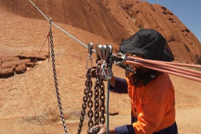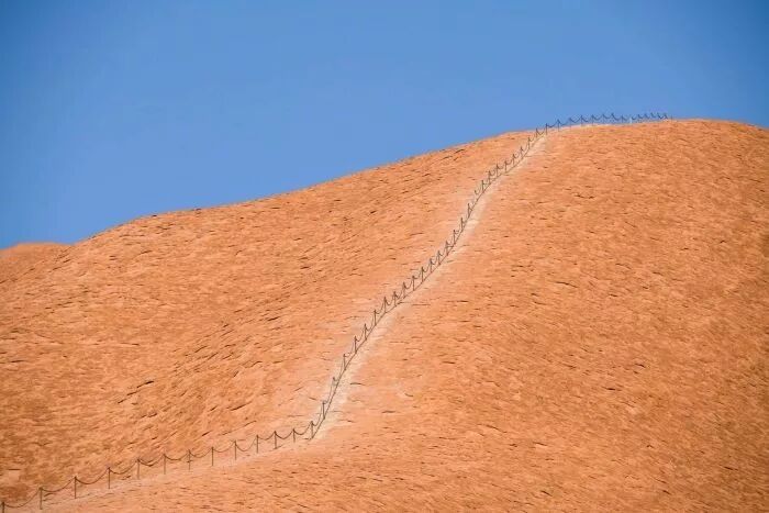 于是,今年的十月,政府开始了对乌鲁鲁巨石上辅助攀爬的链子的拆除工作,如今已经拆掉了最后一根链条。