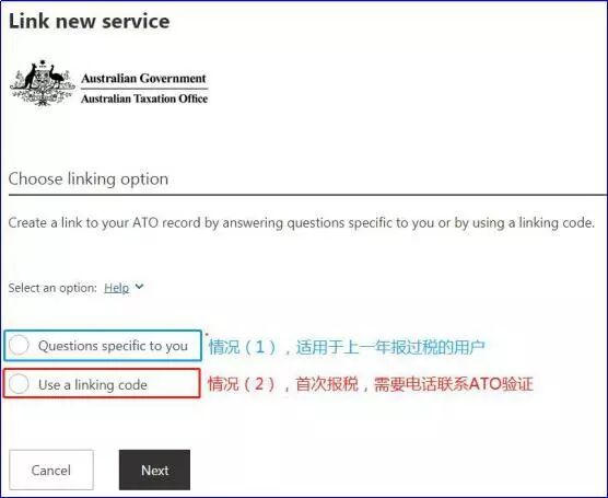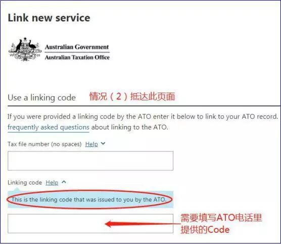 因为 ATO 还没有你的基本资料,需要选择 Use a linking code 使用连接码。