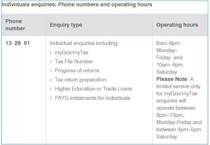 所有第一次报税的小伙伴,都必须打电话给澳洲税局 ATO,call 13 28 61 press 5。工作时间周一到周六,详见下图