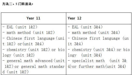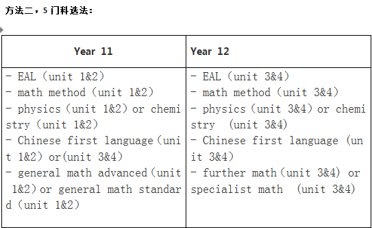 英语(4个单元,以最高分为准)和其他分数最高的3门起作为主四门。主四门的 VTAC 分数100%计入总分。