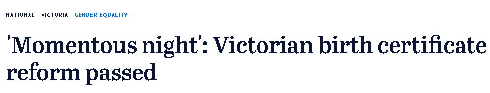 维州,成为了继塔州、北领地、南澳、首领地,第5个可以自由选择出生证上性别的州!