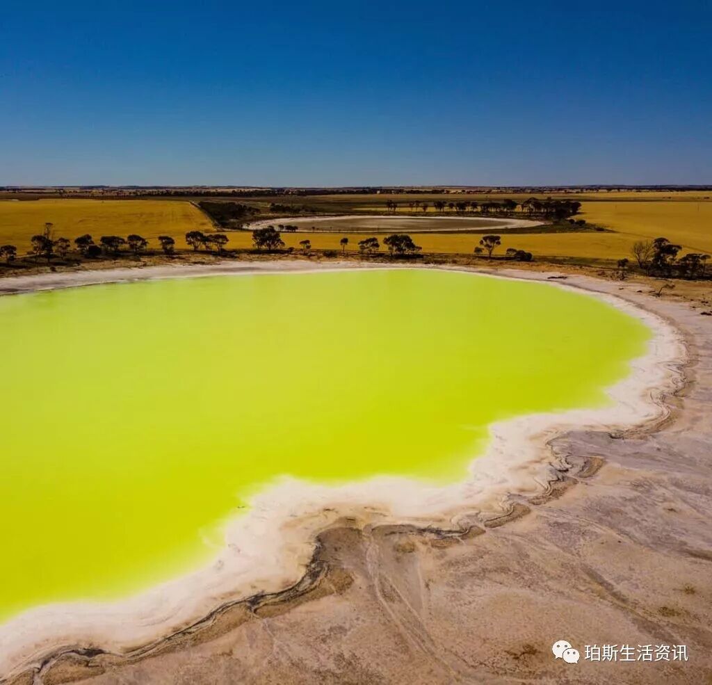 这片泛着神奇黄色的湖,位于西澳的Wheatbelt小镇,距离珀斯大约三个小时的车程。