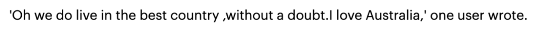 “毫无疑问我们生活在最棒的国家!我爱澳大利亚!”