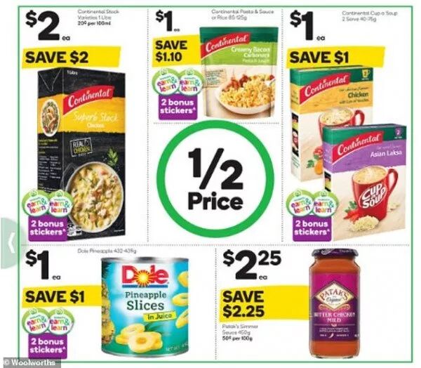 还有仅售3.8澳元的Leggo's牛肉馅意大利面,1澳元的Continental奶油培根以及1澳元的汤。