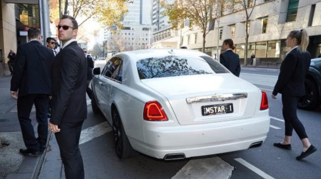在5月的庭审上,Nelly盛装出席,粉色西服搭配了8名保镖和劳斯莱斯。