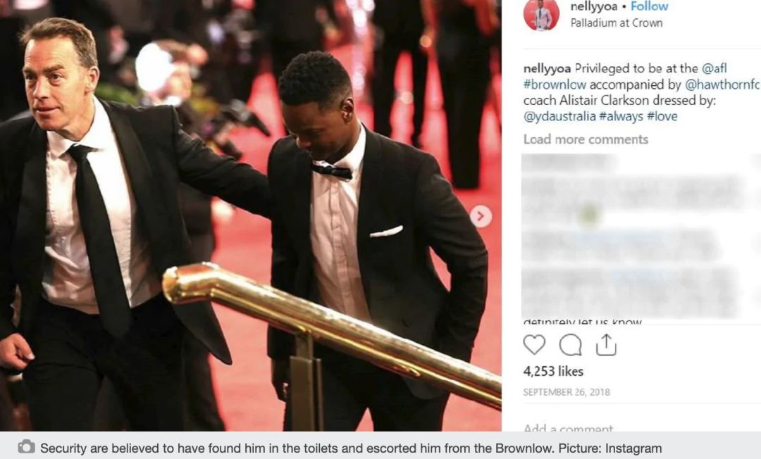 2018年,不知道是运用了什么方法,Nelly竟然蹭了一次AFL的Brownlow Medal红毯典礼。