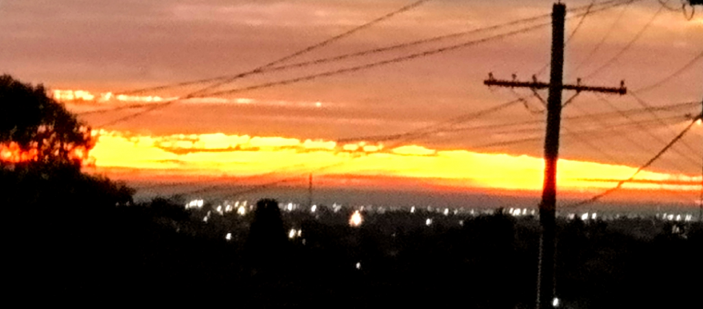 傍晚时分,我出门活动,走在路口处便远远看到路口尽头的一抹鲜亮的橙红色。房屋树木倒映成剪影,电线杆路灯倒映出一个十字形,仿佛十字架,无言而立。上帝,你这是在用什么样的考验,才能救赎疫情下的苍生呢?