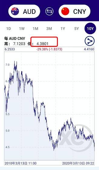 换100万澳币的话,需要438万人民币~