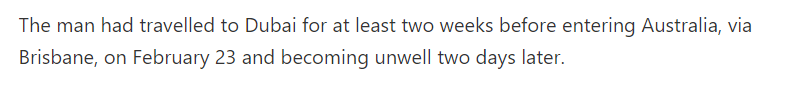 前段时间,一名自第三国迪拜回澳的留学生,就在当地被感染了新冠肺炎。
