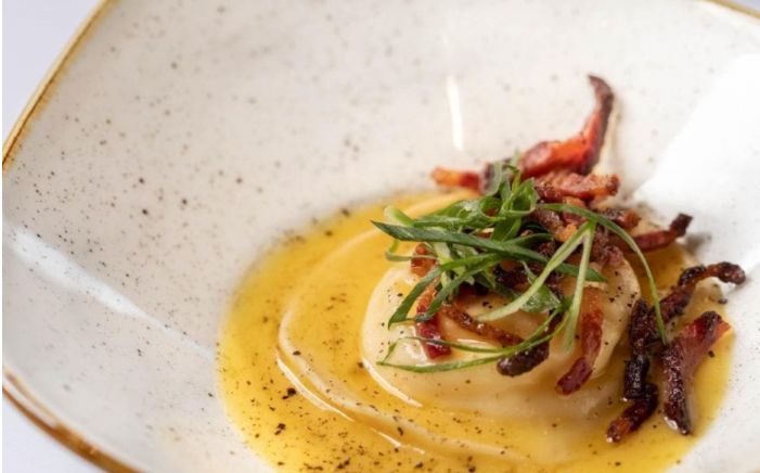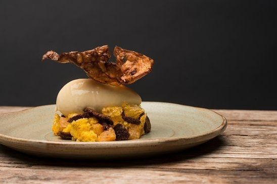 比目鱼用XO酱腌制,用帕尔马干酪,咸肉片和蘑菇代替了传统的干海鲜。乳清干酪冻糕配上速溶茴香冰糕和柠檬奶油,是您在饱腹之余想要来一份的甜点。