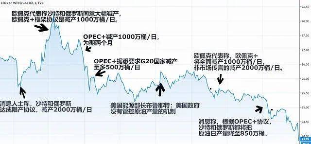 最后的结果就是,国际原油价格应声而跌,美油最低下跌到20美元/桶,现在来看,比水都便宜。