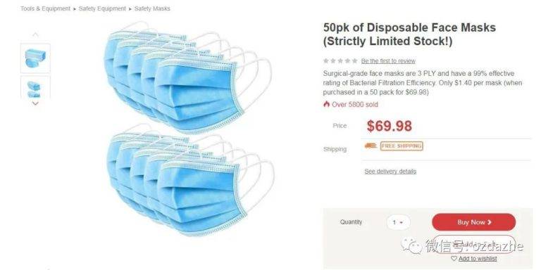 快抢!一次性口罩有货!50pk $69.98 @mydeal 手慢无!!
