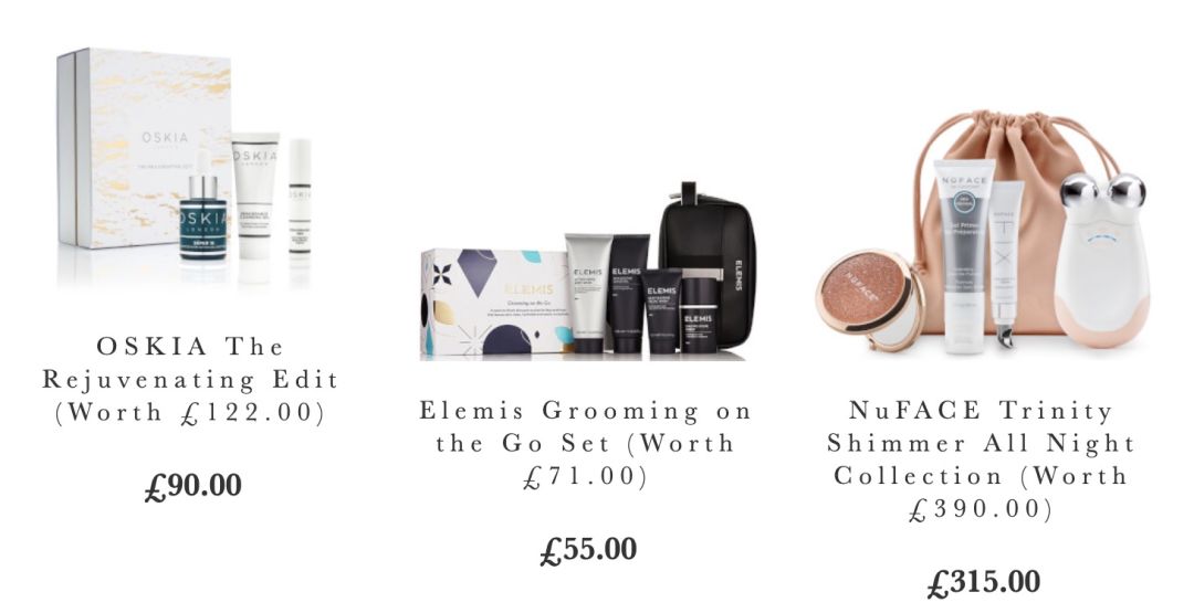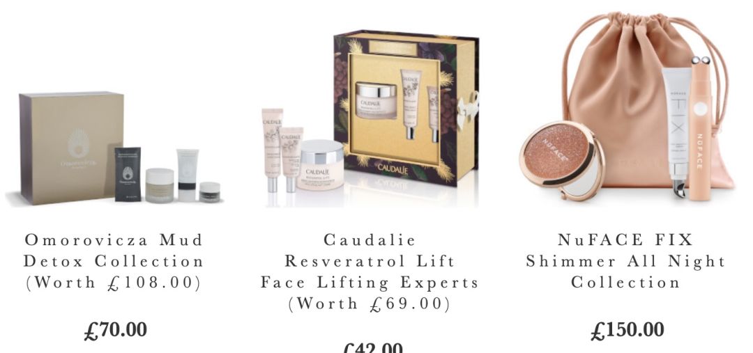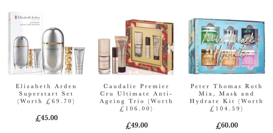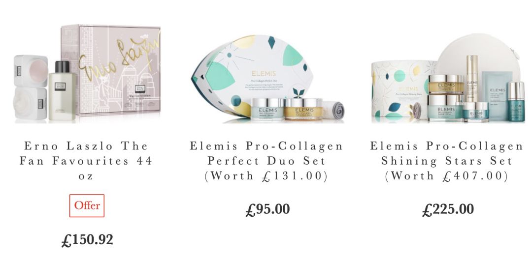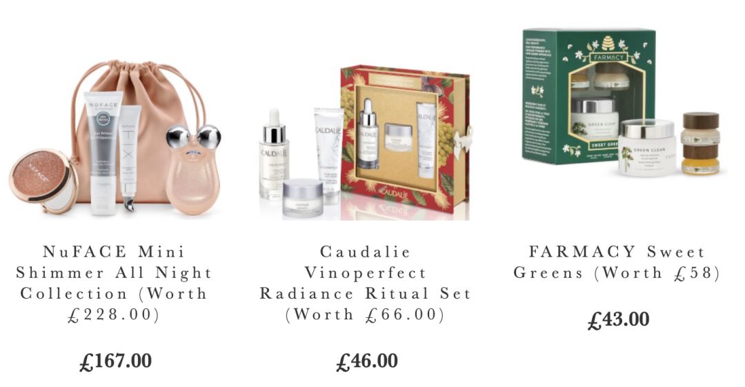 参加折扣的品牌礼盒有Caudalie,ELEMIS,Molton Brown, Benefit,雅顿,菲洛嘉,茱莉蔻,Argentum银霜,NuFACE,Omorovicza等等。