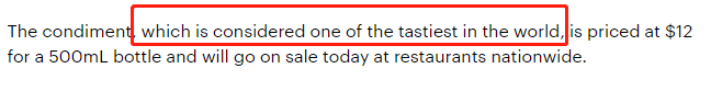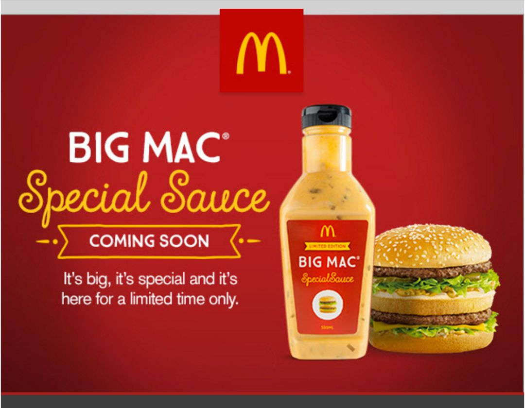 麦当劳澳洲营销总监Jo Feeney表示:“我们知道‘巨无霸’特制酱料有一批忠实的粉丝,我们很高兴能在有机会在这段时间内为我们的顾客提供这种深受澳洲人喜爱的酱料。”