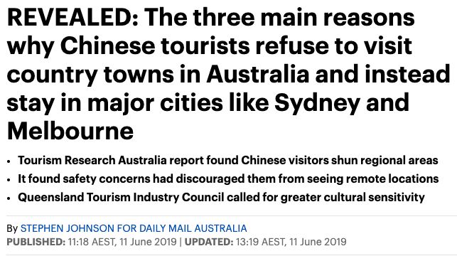 据报道,中国游客通常都会避开去澳洲的小镇旅游,而是一般都会选择游览悉尼墨尔本等主要城市。
