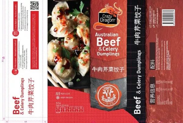 这些饺子是在中国生产的,公司是一家总部在墨尔本、名为My Crazy Auntie’s Food的公司,由Macka’s Australian Black Angus Beef提供的配菜肉制成,这是一家位于新州的垂直一体化出口企业。