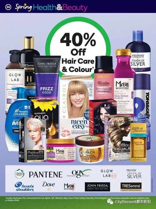 指定头发洗护系列40% off;