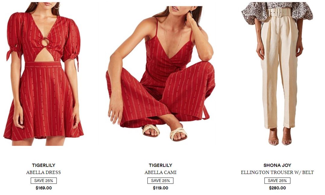 Shona Joy、Tigerlily、Faithfull The Brand、Jets、Armani Exchange、Ted Baker、G-Star、Gant、Nautica、Indie kids by Industrie等品牌全价女装、男装和童装均享此优惠。