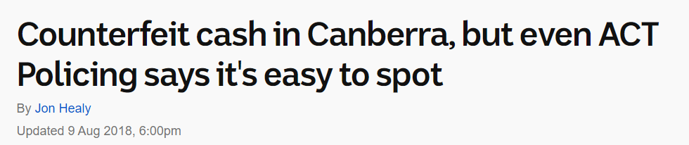 2018年这种练功券假钞就在堪培拉出现过,ABC进行了报导。
