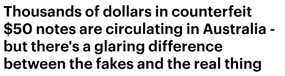 最后给大家提个醒,根据澳洲法律,非法持有或使用假钞将面临高达12年的牢狱之灾。还是别怀有侥幸心理,如果有这种假钞,还是赶紧上交给警察叔叔吧。