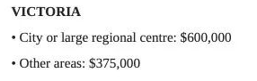在维州,购入Melbounrne和Geelong的低于60万的房屋才有资格申请,而维州其他地方的房屋价格上限为37.5万