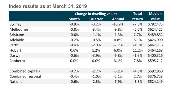 在上季度,包括独栋住宅和公寓在内,住宅价格跌幅最大的城市是达尔文(下跌3.9%)、墨尔本(下跌3.4%)、悉尼(下跌3.2%)和珀斯(下跌2.9%)。