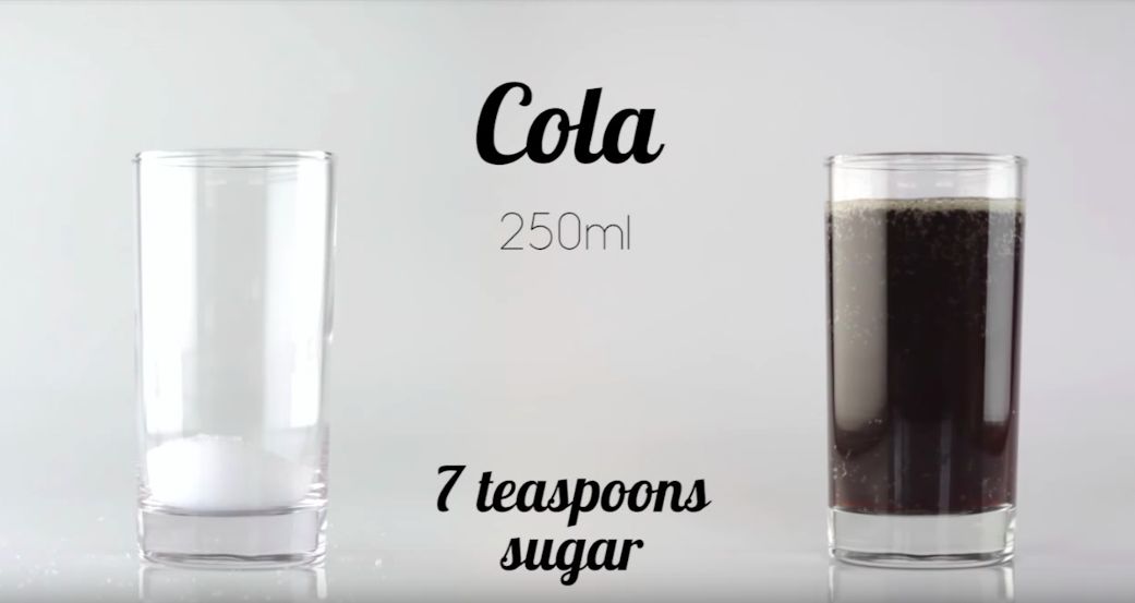 我们来用可乐与橙汁做个对比(1 茶匙约等于 4 克):